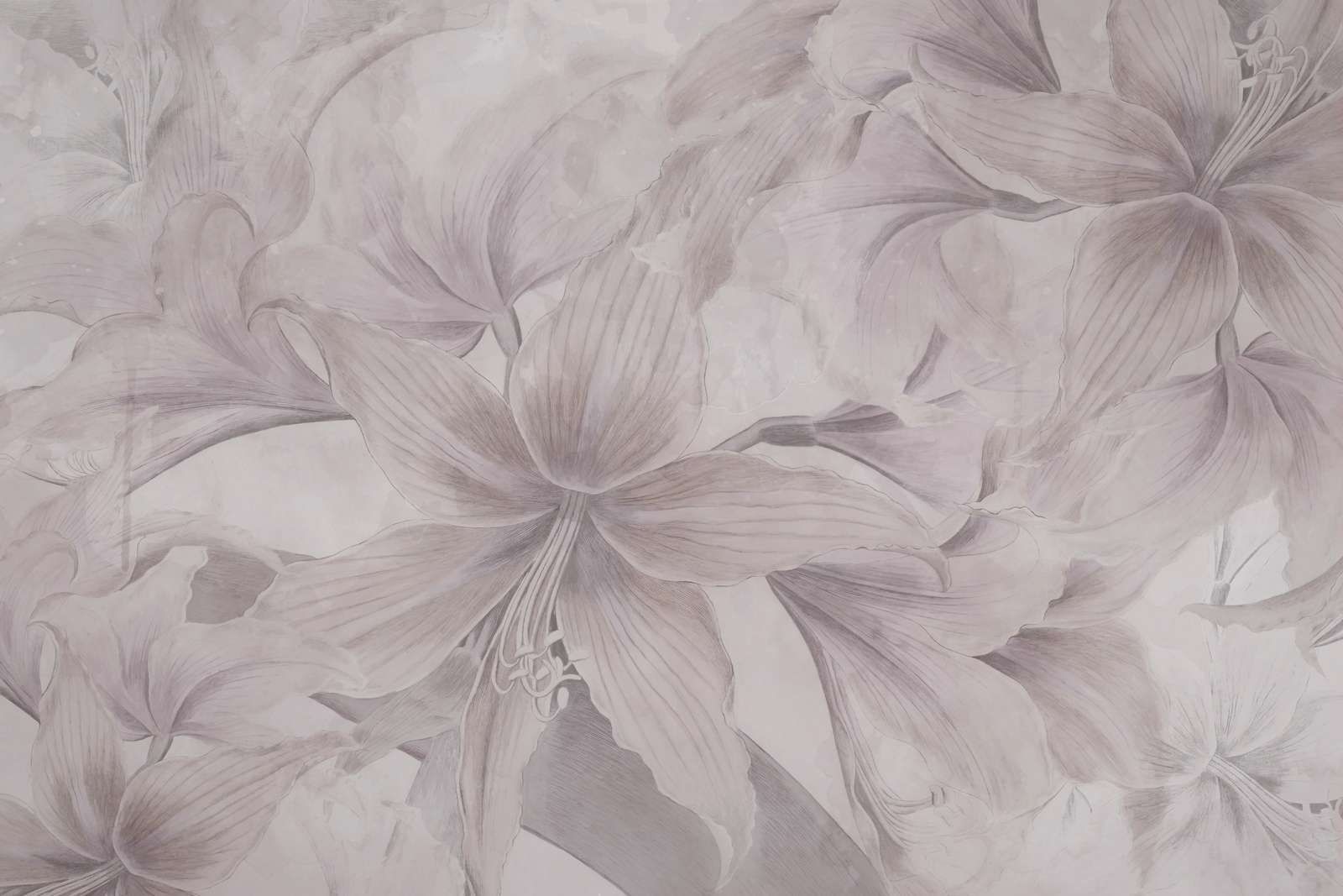 En raffineret blanding af bløde pastelfarver og elegante blomstermotiver, der fremkalder en fredfyldt og drømmende atmosfære. De subtile teksturer og delikate linjer understreger blomsternes naturlige skønhed, mens den kunstneriske finish giver et tidløst look.
