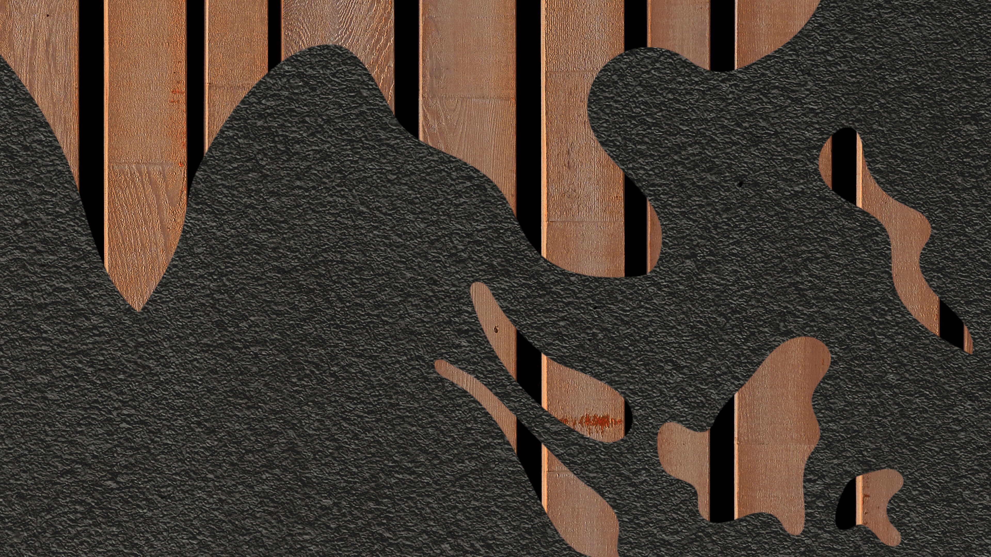 Verdenskort med træplader på grå baggrund. Den grå baggrund giver tapetet et hårdt look.