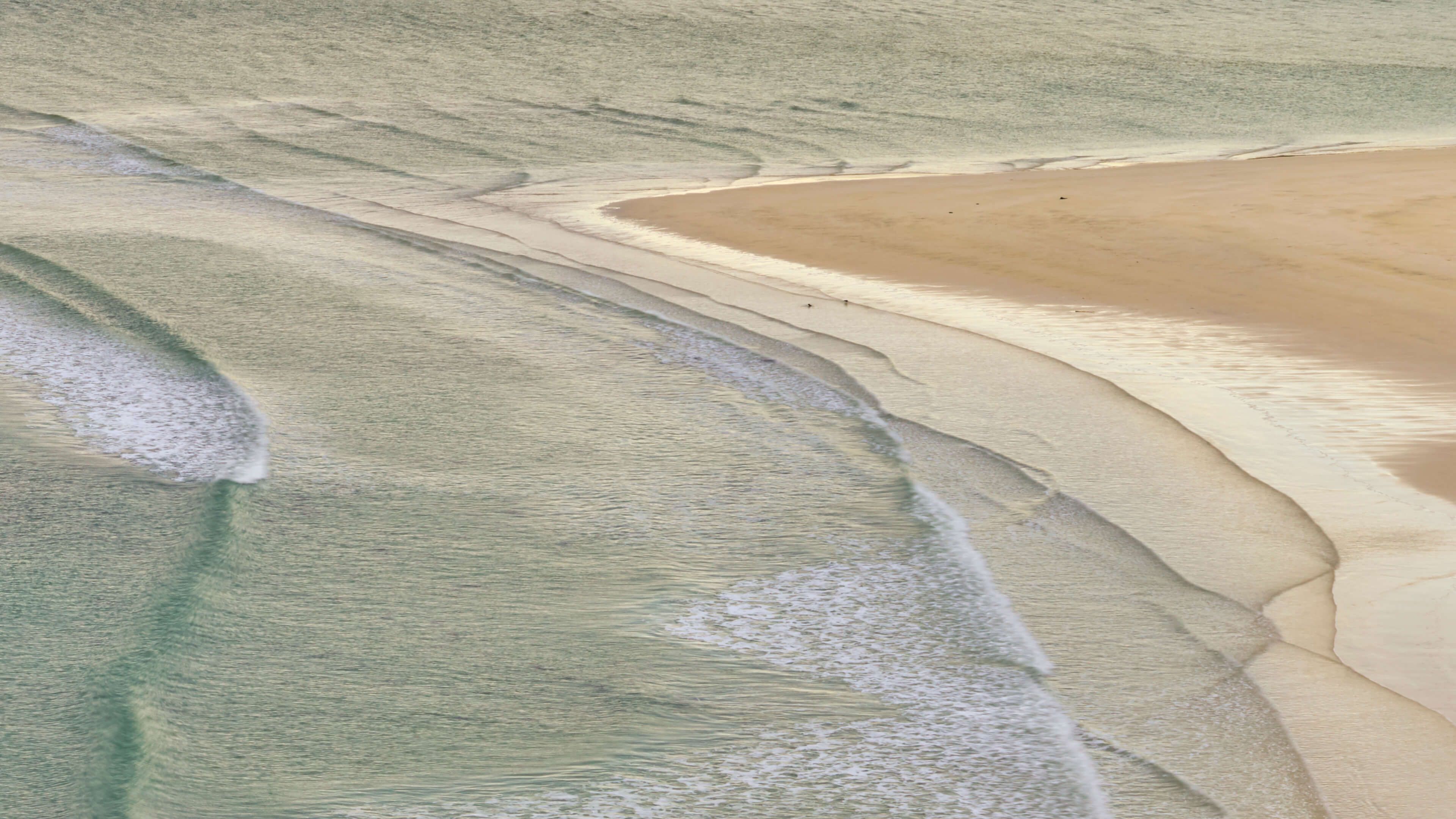 porträtt foto av ett lugnt hav längs kusten av en ö