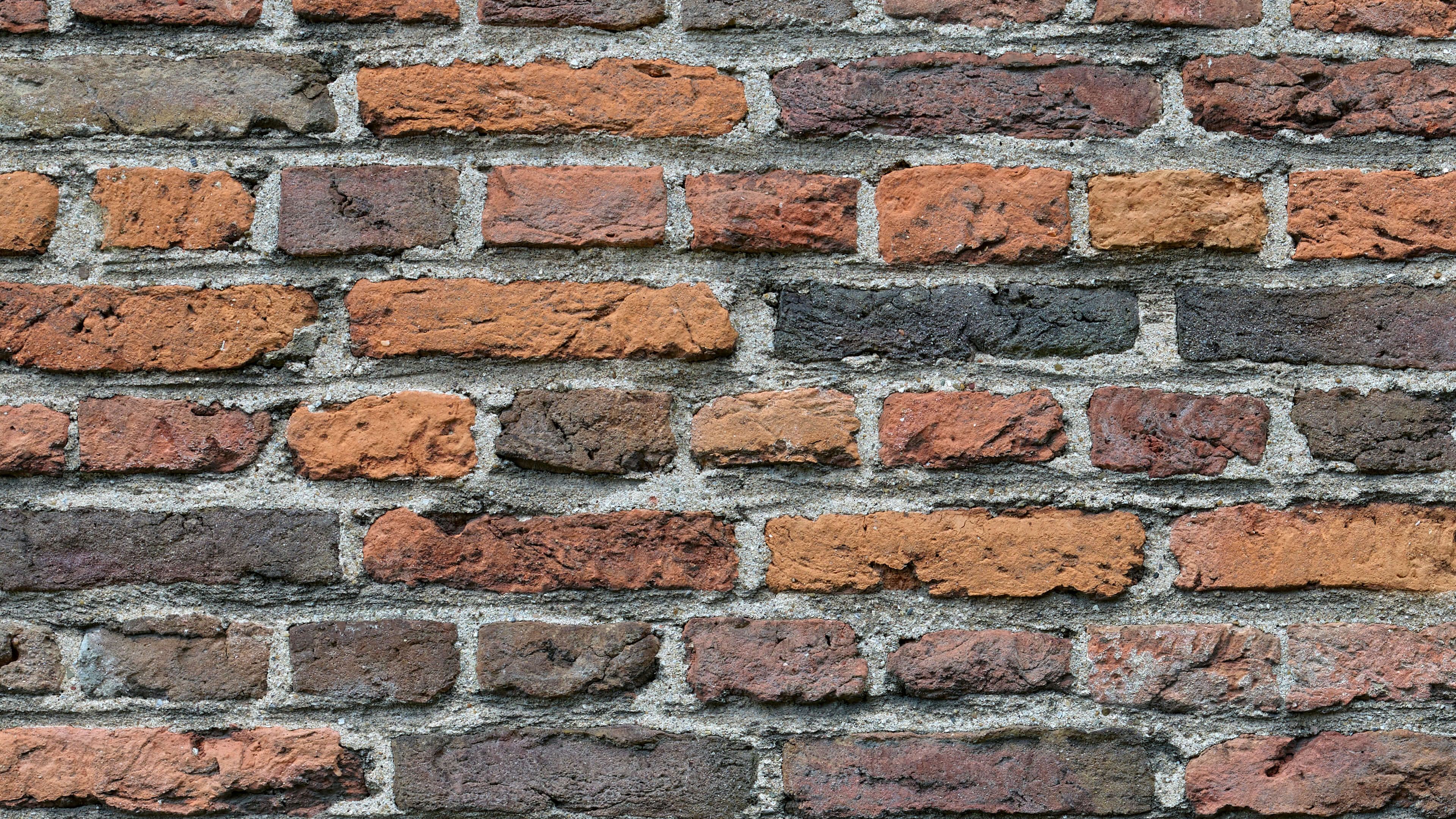 Restaurerad mur av gammalt färgat tegel. Med den här fototapeten i rummet är det som om väggen är gjord av sten.