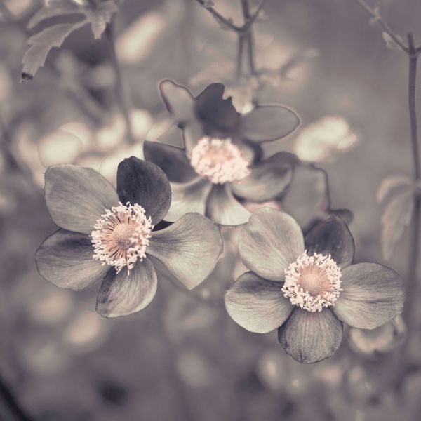 En närbild av anemoneblommor. Kombinera den här fototapeten i ditt hem för att skapa ännu mer atmosfär.