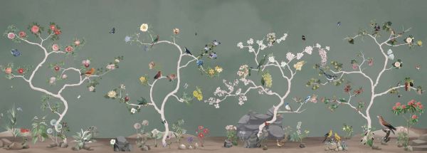 Denna design ger liv till en förtrollande atmosfär, där flora och fauna mästerligt sammanförs. Subtila färger och fina detaljer bildar ett harmoniskt landskap som utstrålar naturens lugn. Blommande blommor, elegant flygande fåglar och härliga fjärilar skapar en livlig scen som utstrålar både dynamik och lugn. De mjuka pastellfärgerna och organiska formerna passar perfekt in i olika inredningsstilar, från en modern skandinavisk miljö till en klassisk eller romantisk atmosfär.