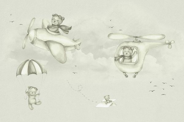 Tapet - Björnpiloter i grönt