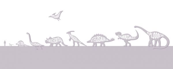 En vacker illustration av dinosaurier i rosa på en vit bakgrund.