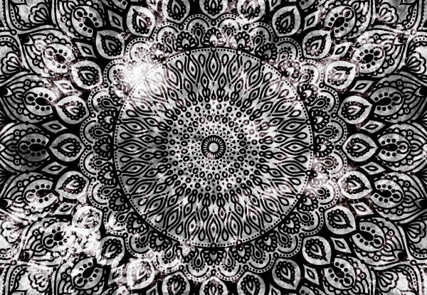 En abstrakt mandala lavet i akvarelfarve. På grund af de sorte og hvide farver i mandalaen kan du nemt kombinere dette fototapet i næsten alle hjem.