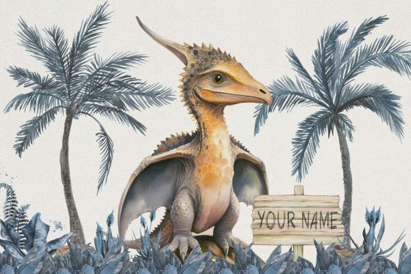 En baby pteranodon i den blå jungle. Også tilgængelig med dit barns navn!