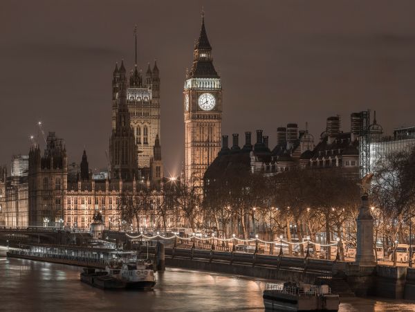 Big Ben og Westminster Abby om aftenen. Kombiner dette fototapet i din stue eller dit soveværelse.