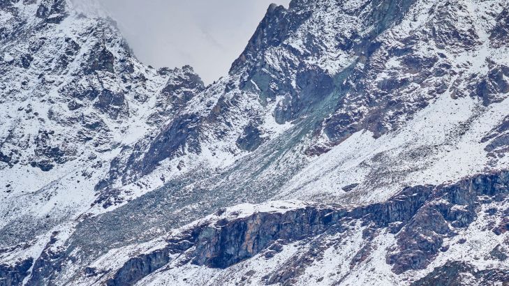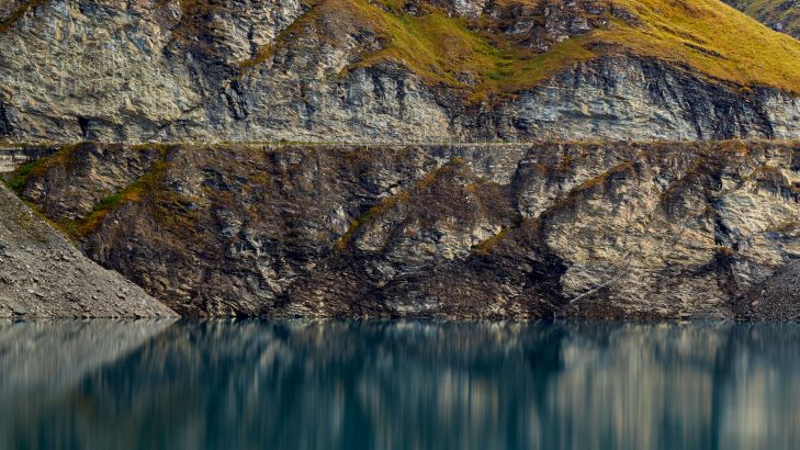 Tapet - Bjergtoppe med sne i nærheden af bjergsø