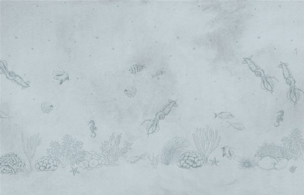 Tapet - Blæksprutter havblå