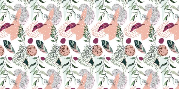 Lyserød fototapet med en hvid baggrund og forskellige slags grene.