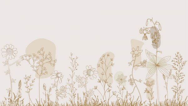 Høj blomstermark tegnet med forskellige nuancer af natur. Farve: Beige, brun og grøn