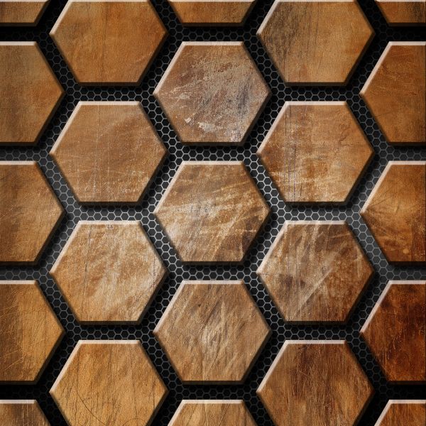 Fototapet af brune sekskanter med sølvfarvede sekskanter i baggrunden.
