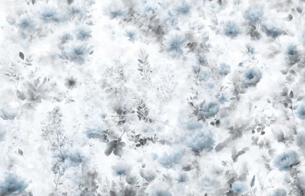 I dette design pryder blomster i nuancer fra lys himmelblå til blød indigo baggrunden, som også har en akvarel-lignende glans. De transparente penselstræk giver det hele et roligt og næsten eterisk præg. De kølige, forfriskende farver skaber en afslappende atmosfære, der indbyder til afslapning og dagdrømmeri.