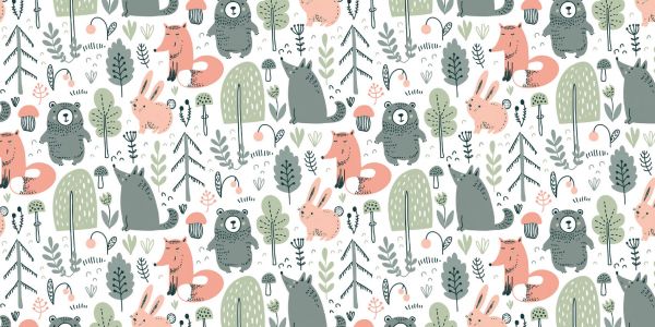 Sødt mønster med skovdyr i forskellige farver.