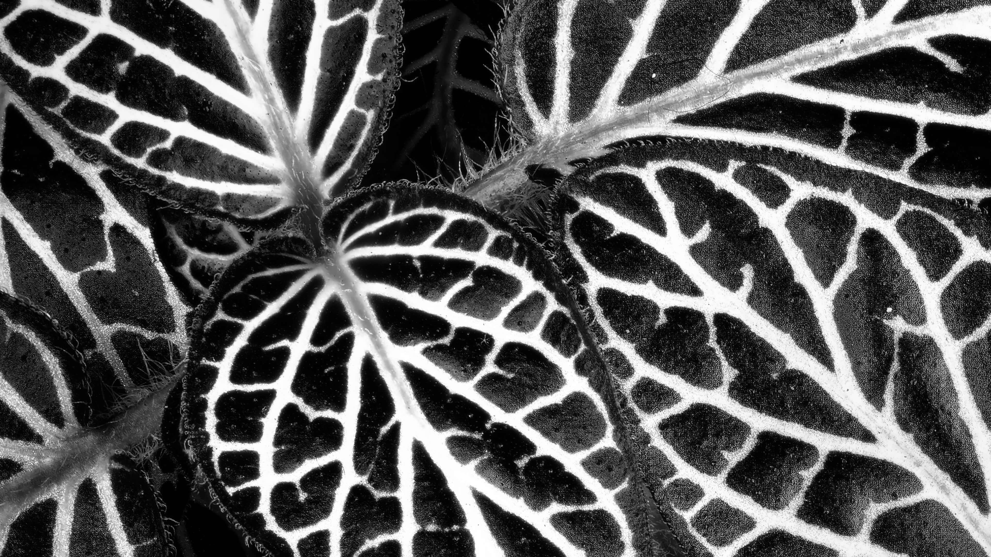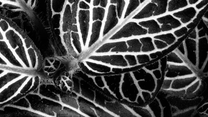 Plant Fittonia med detaljerøde blade og færdig i sort og hvid
