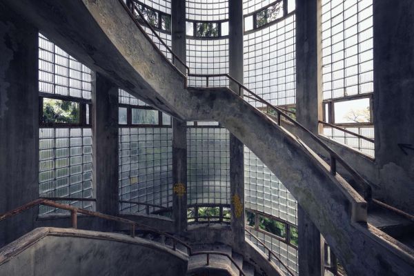 Den imponerende trappe i et gammelt sanatorium ved bredden af Comosøen. Det blev forladt for mange år siden, men er nu ved at blive renoveret og givet et nyt formål.