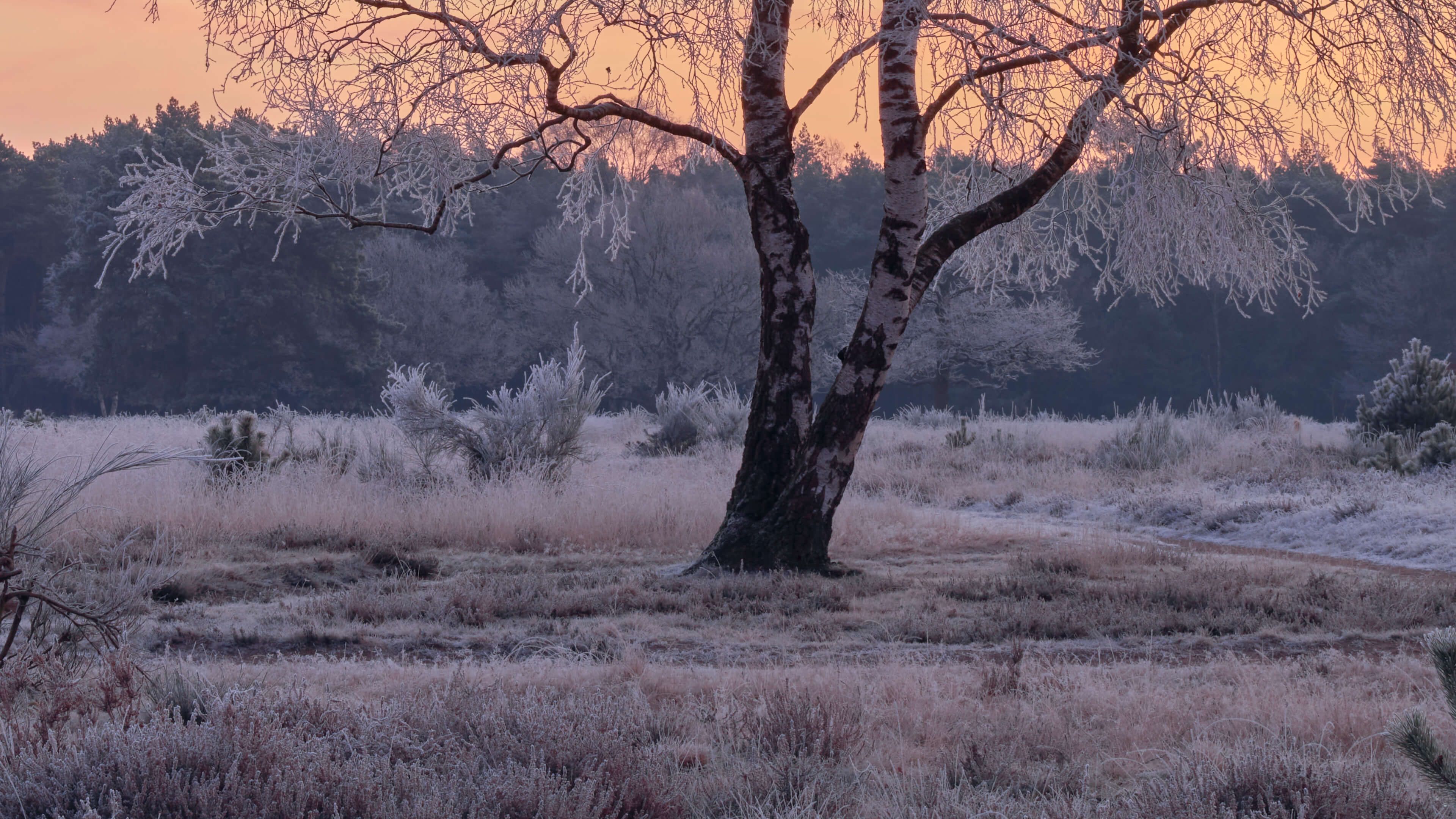 Smuk solopgang på den frosne hede. Kombiner dette fototapet i dit hjem for at skabe endnu mere stemning.