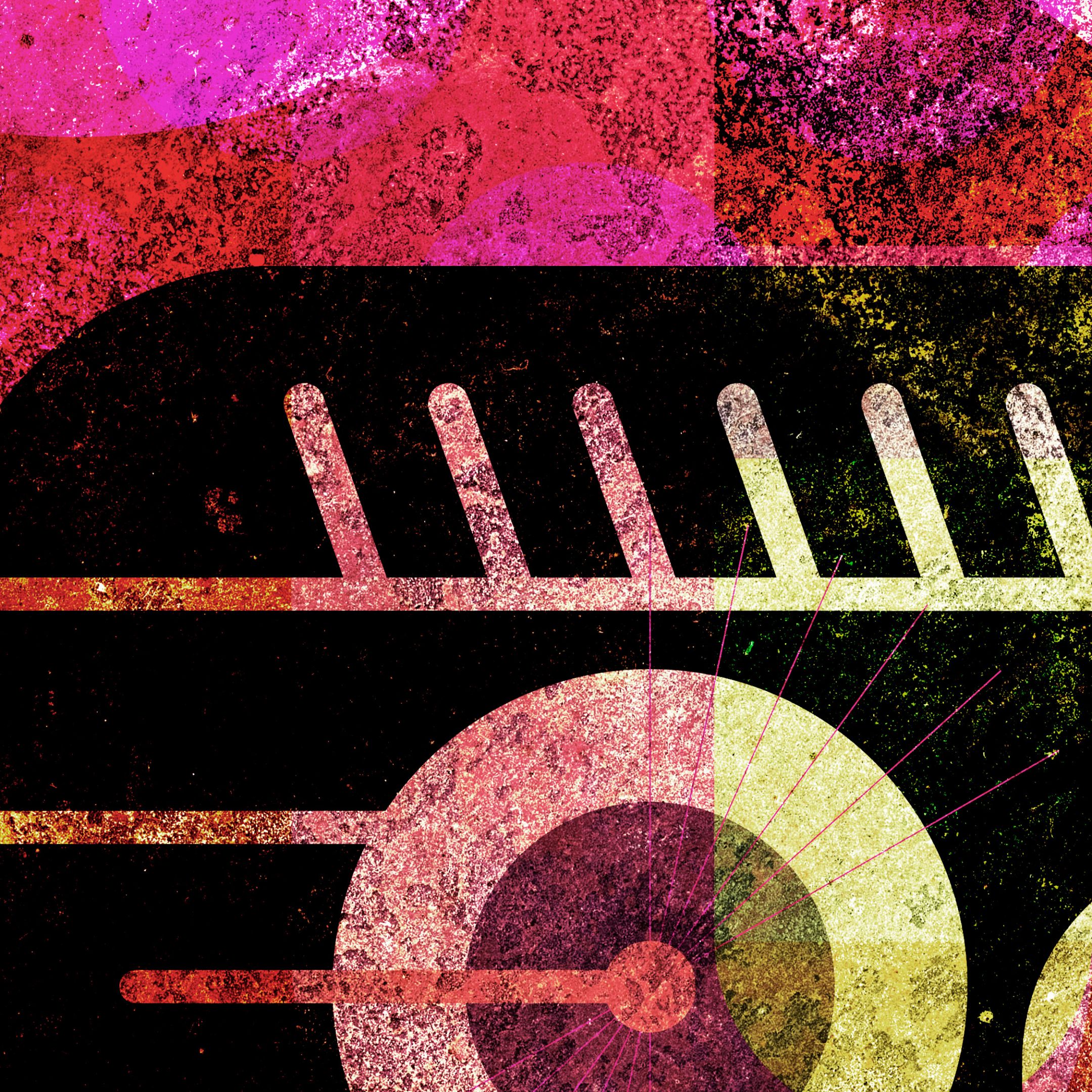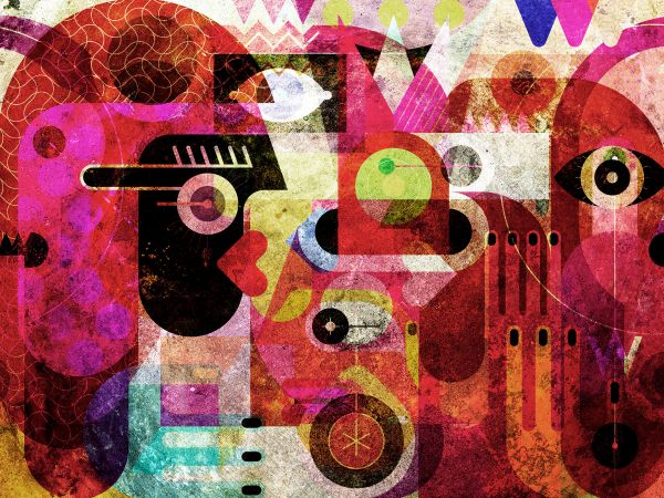 Farverig graffiti med ansigter i et vintage look. Farverne skaber et vintage-look i rummet.