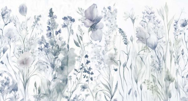 Kølig, rolig og raffineret – denne blå blomstereng bringer serenitet ind i ethvert rum. Aquarel-stilen lader nuancer som isblå, indigo og blød lilla flyde sammen, med sarte blomsterformer der vækker en følelse af stilhed og kølighed. I et moderne eller minimalistisk interiør med en kølig farvepalet udgør dette design et stilfuldt hvilested. Tænk på et hjemmekontor eller soveværelse, hvor blå sætter tonen for fokus og afslapning. Smukt at kombinere med lyst træ, sølvaccentuer eller hvidt tekstil for et friskt udseende. Blandingen af forskellige nuancer af blå skaber dybde uden at føles tung, hvilket gør det særligt velegnet til lyse og åbne rum.