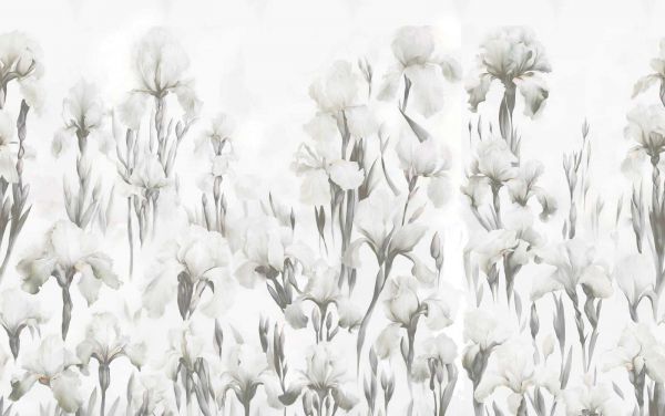 Varme beige nuancer og delikate akvarelleffekter giver dette design et naturligt og elegant udseende. Irisserne udstråler ro og raffinement mod en lys baggrund.