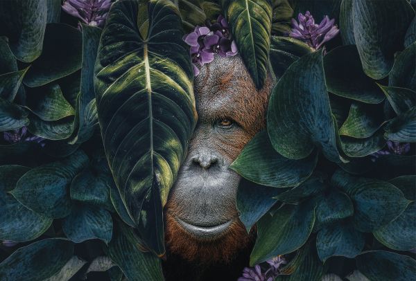 Dette 'Jungle Orangutan'-tapet vil gøre din væg til et ægte blikfang. Med dette tapet i dit hjem er det, som om du står foran orangutangen.
