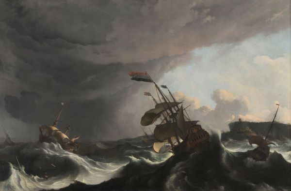 Krigsskibe under storm, Ludolf Bakhuysen, ca. 1695