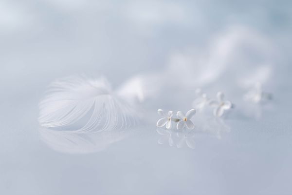 Een veer met witte bloemen. Door de witte kleuren breng je nog meer rust in de kamer.