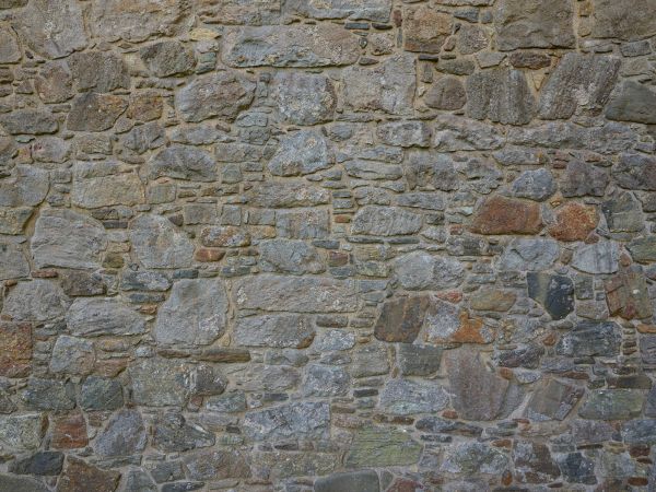 Den dominerende grå blandet med et par mere farverige indslag, som på en middelalderborgsmur