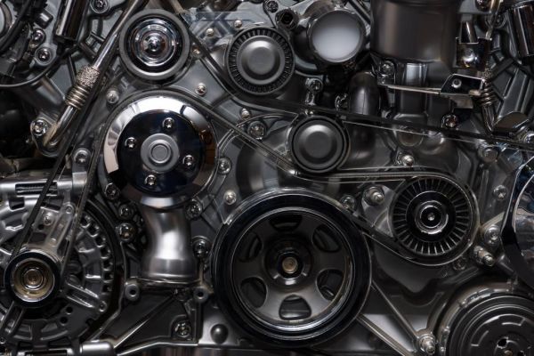 Fototapet med en detaljeret nærbillede af en skinnende dieselmotor