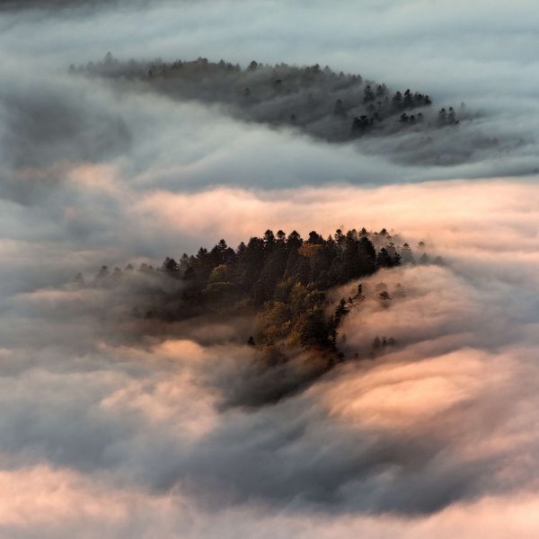 Een mysterieuse rivier. Doordat de rivier niet te zien is door de wolken is het mysterieus.