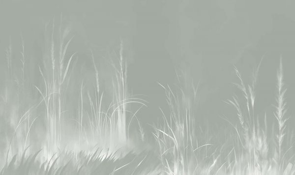 Svingende prydgræsser i dybe gråtoner skaber en moderne og afdæmpet atmosfære. Akvarel-effekterne og subtile penselstræk giver et elegant og tidløst udseende, ideelt til et stilfuldt interiør.