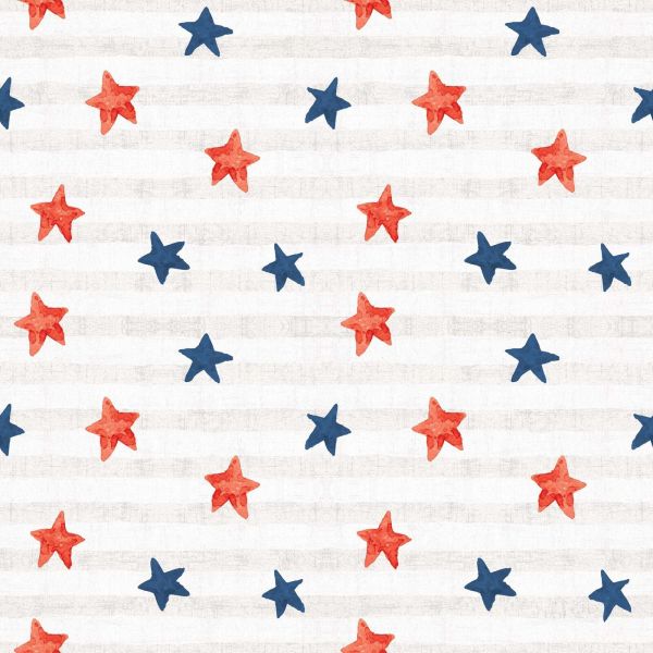 Dette glade design består af håndmalede stjerner i varme røde og dybblå nuancer, jævnt fordelt over en lys baggrund med subtile horisontale striber i gråtoner. Akvarelstrukturen af stjernerne giver mønsteret et blødt og legende udtryk, mens den regelmæssige placering skaber en beroligende rytme. Kombinationen af farver og former gør dette design energisk uden at være overvældende. Mønsteret passer fremragende i et legende eller moderne børneværelse, hvor farver og glade motiver bringer rummet til live. Også i et maritimt eller nautisk inspireret interiør kommer dette design til sin ret, takket være den klassiske rød-blå kombination. Kombiner dette design med hvide møbler, linned eller bomuldstekstiler og tilbehør i rød, blå eller lysegrå. Tænk på en strikket pude, en trælegetøjskasse eller et dynebetræk i matchende farver. For et blødere look kan pastelfarver eller beige nuancer tilføjes. Særdeles velegnet til børneværelser, legeområder eller kreative rum, hvor en legende atmosfære er ønsket. Også i et strandhus eller som et accent i en gang eller toilet kan dette design give et livligt, frisk præg. Gennem den enkle men glade gentagelse føles mønsteret luftigt, rytmisk og tidløst.