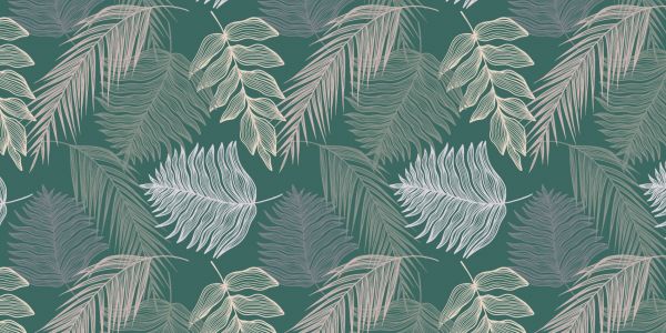 Tapet - Palmeblad på grøn baggrund