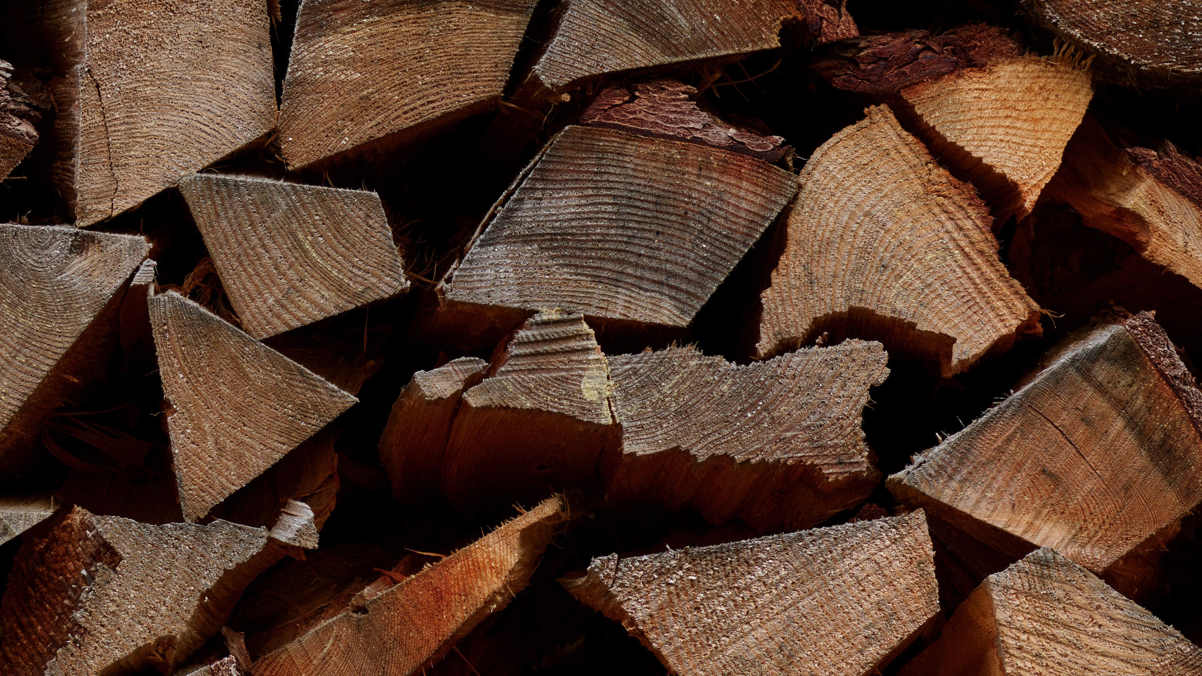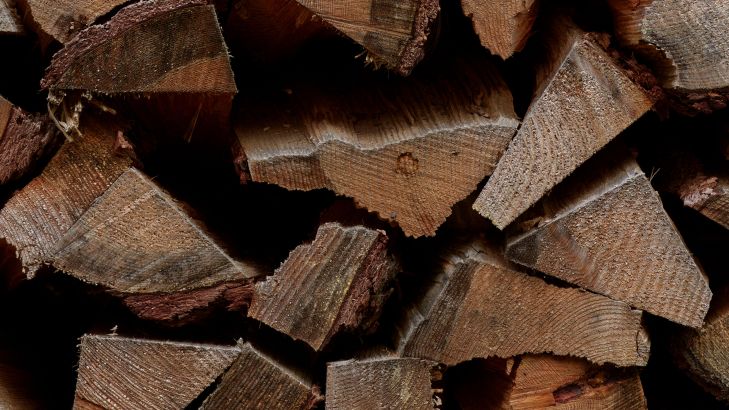 Runde bunker af træklodser. Kombiner dette fototapet med en brændeovn for at skabe en endnu varmere atmosfære i dit hjem.