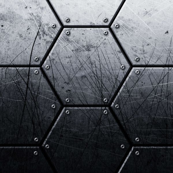Fototapet af en sekskantet metalplade med nitter. Kombiner dette fototapet i dit hjem.