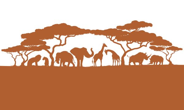 Rusten tapet, der skifter til et silhuetlandskab med safaridyr.