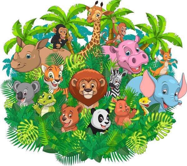 Fototapet af mange forskellige dyr til børn. Kombiner dette i børneværelset.