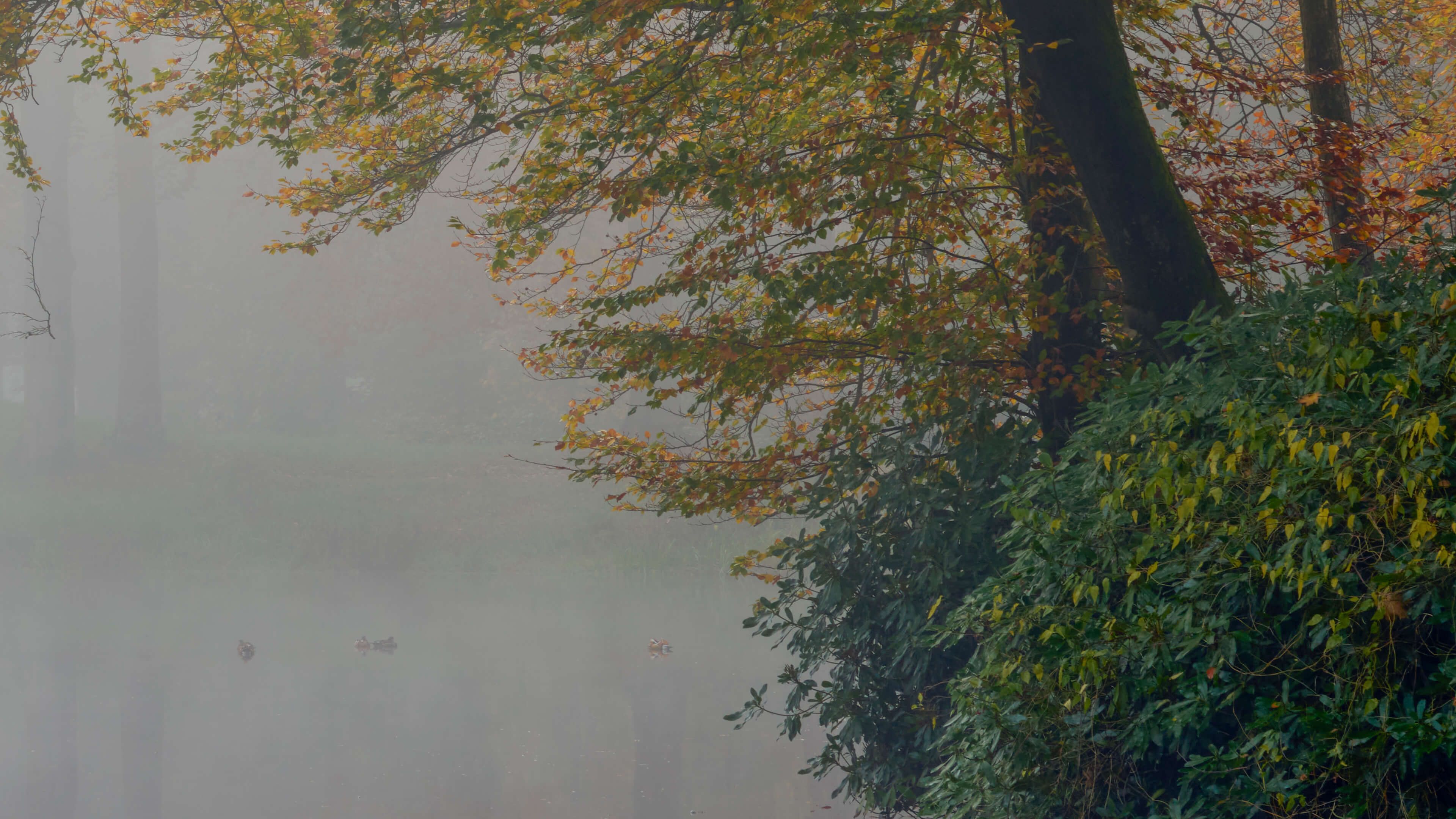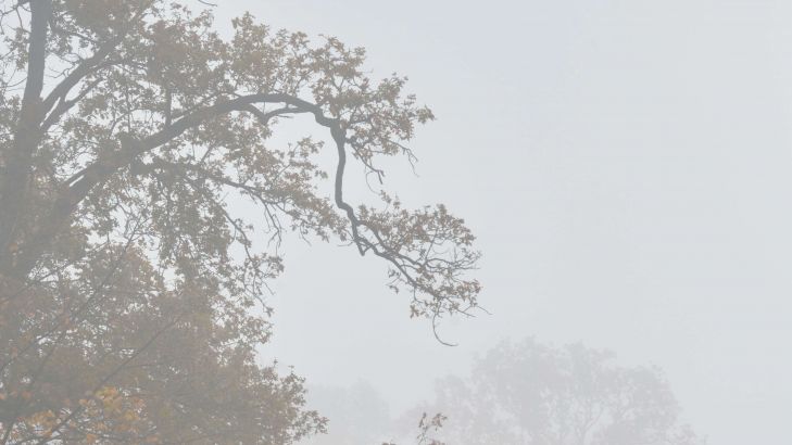Skovdam i tåge i efteråret. Bring efteråret ind i dit hjem på en unik måde.
