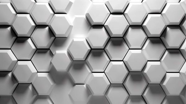 Dette medrivende mønster af tredimensionelle hexagoner i forskellige sølvtoner skaber en visuelt fortryllende tekstur.