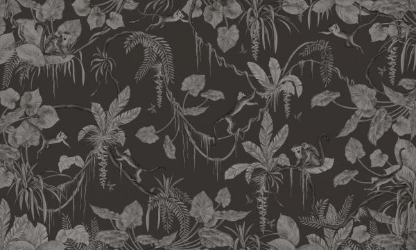 Tapet - Playful Monkeys - Monochrome - Black