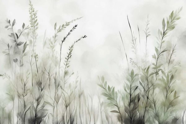 Et subtilt og drømmende design af delikate silhuetter af planter, med flydende farveforløb og et blødt, eterisk udseende. Dette design udstråler ro og elegance og er perfekt til en seren atmosfære i ethvert rum.