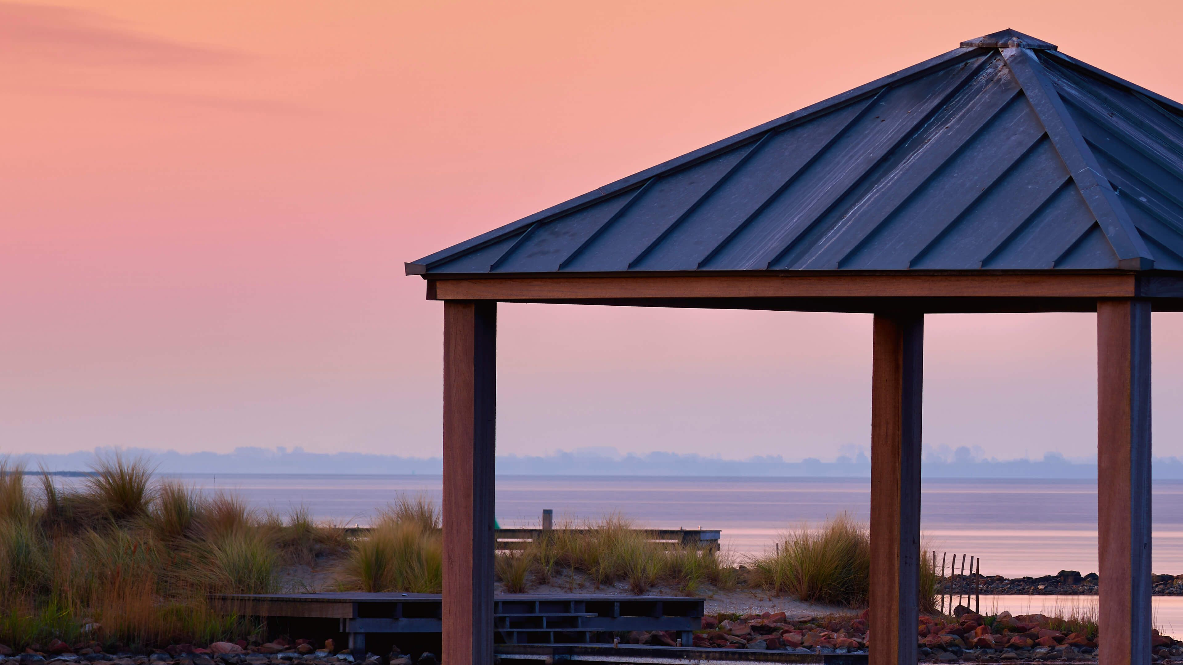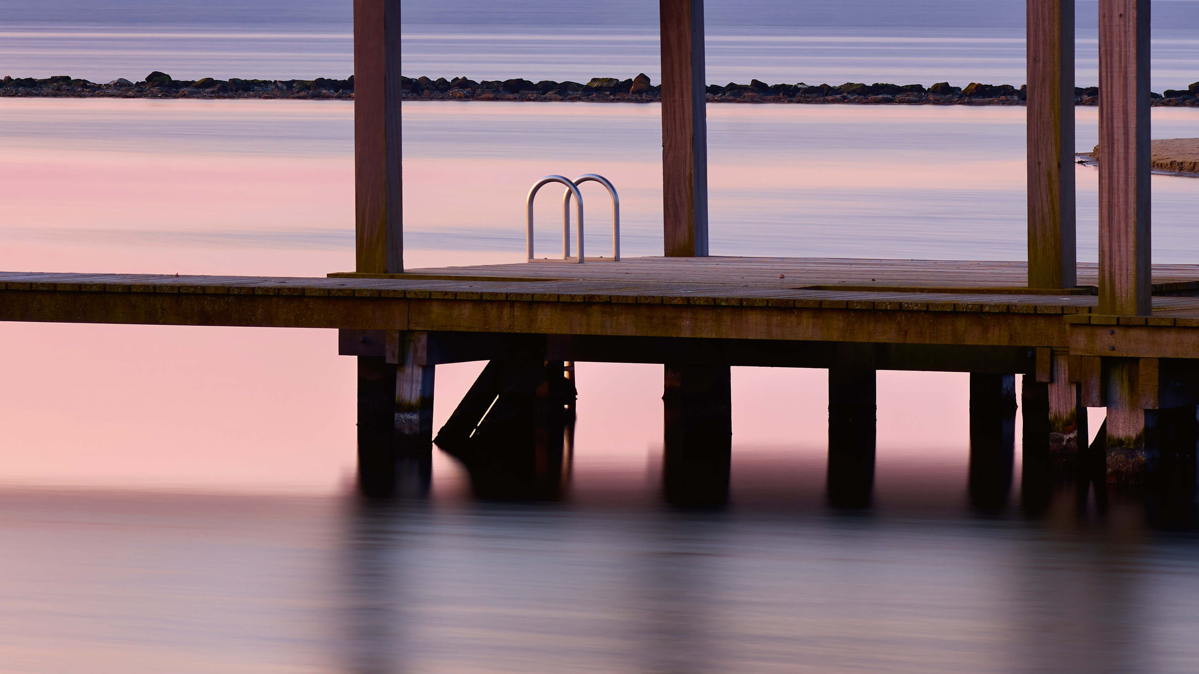 Tapet - Svømning af anløbsbro ved solopgang
