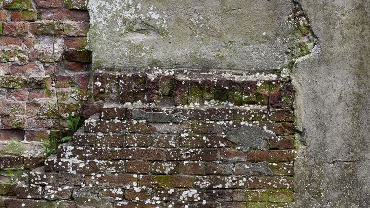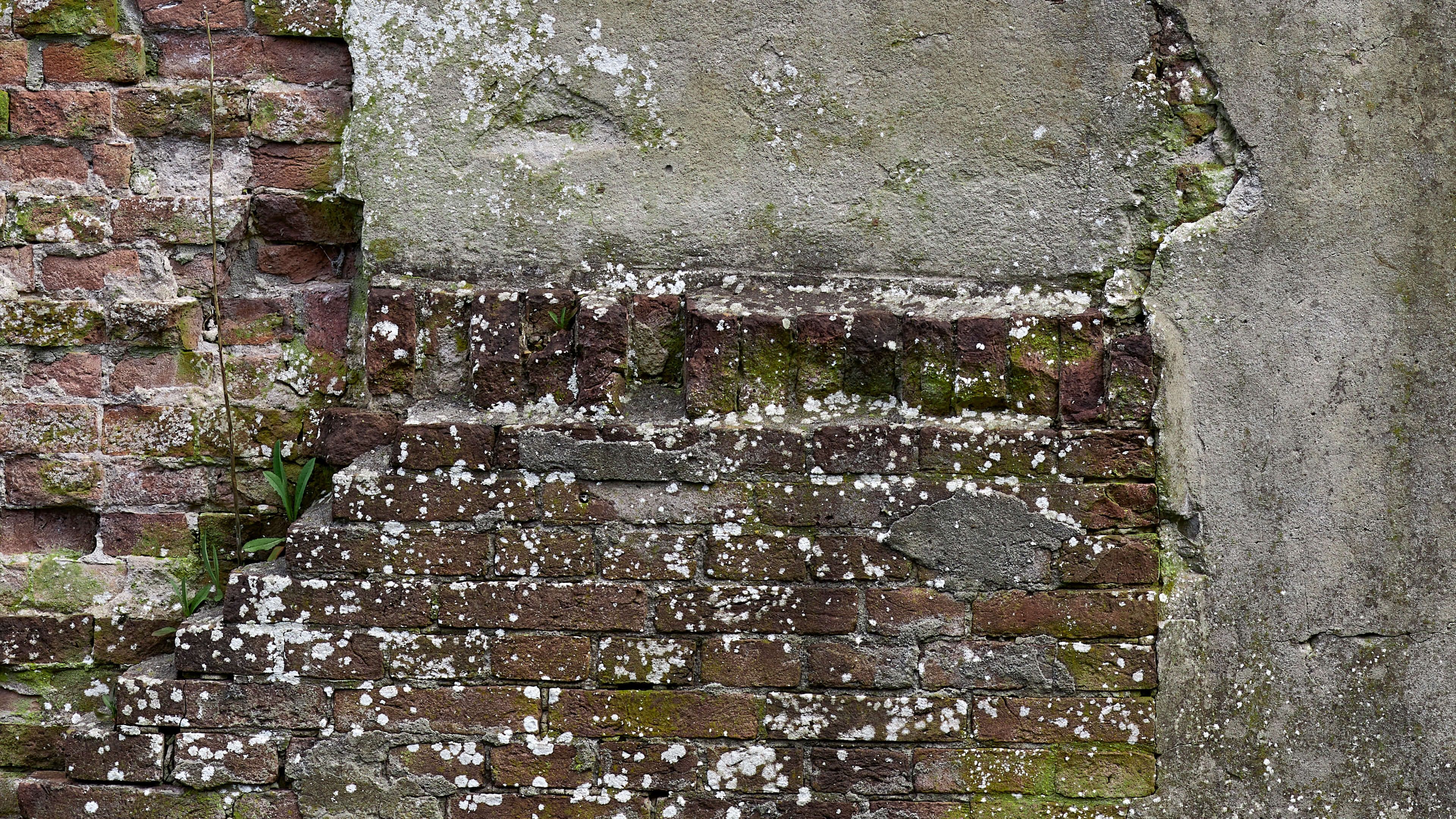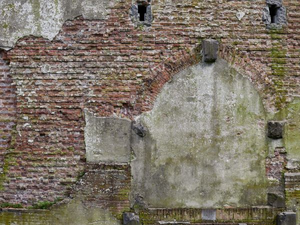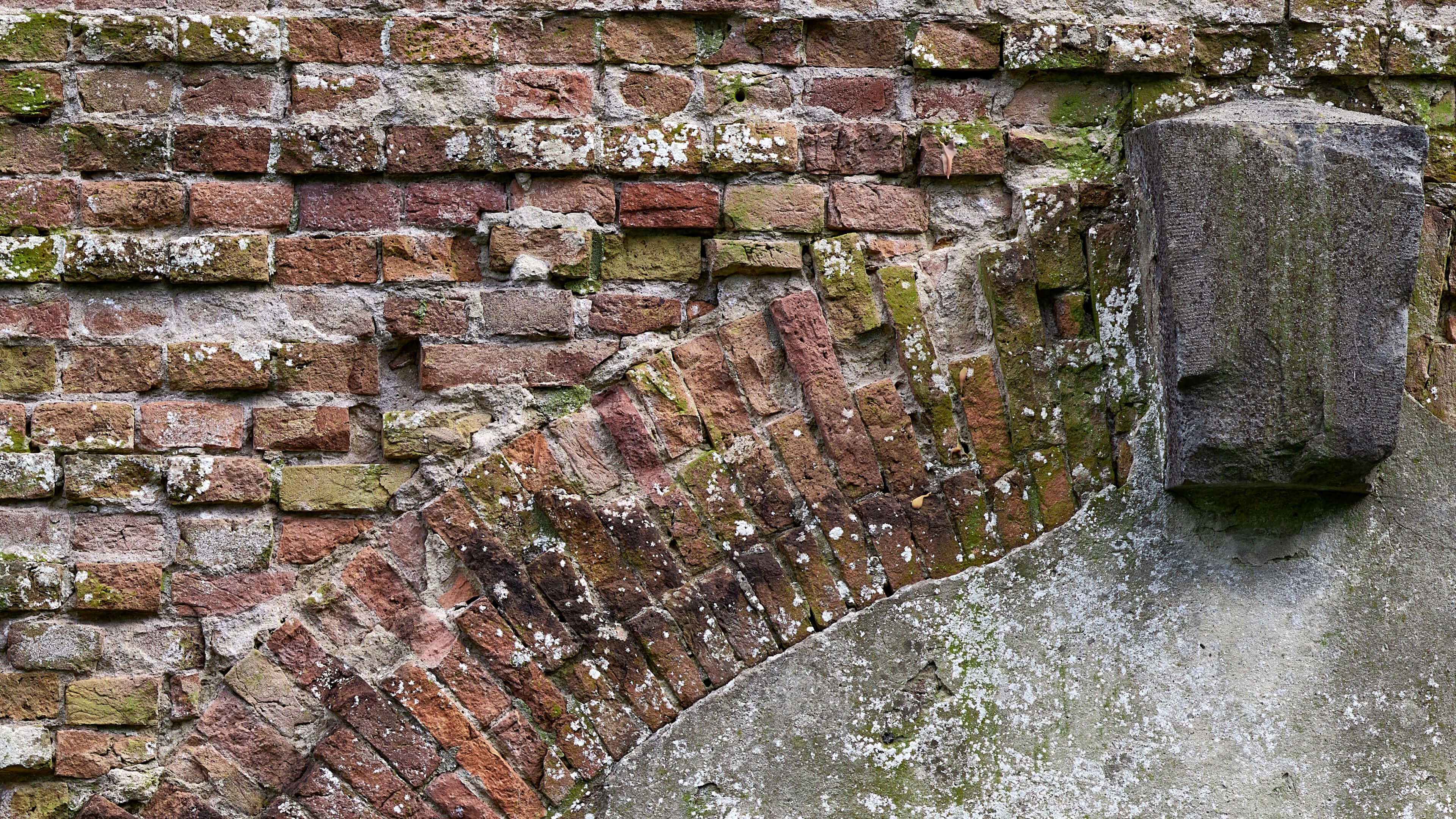 Tidligere passage i murstensvæggen. Fordi passagen er lukket, ser denne væg endnu ældre ud.