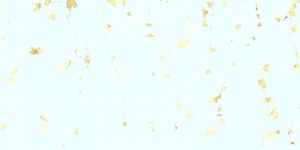 Dette design udstråler roen på en efterårsdag med blade i et spektrum fra creme til pastelgul, der hvirvler legende rundt på deres spinkle ranker. Mønsteret breder sig over den lyse baggrund som en stille ode til de skiftende årstider.