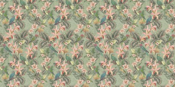 Tapet - Tropiske junglefugle og papegøjer - salviegrøn