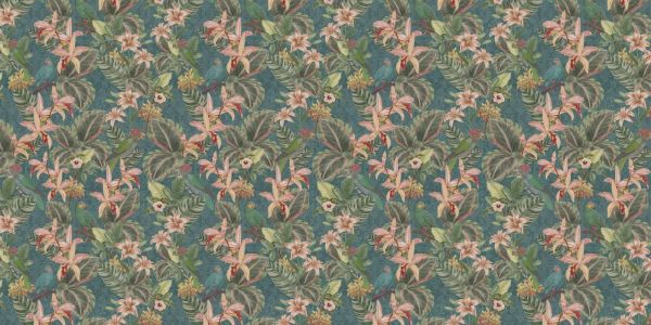 Tapet - Tropiske junglefugle og papegøjer - turkis
