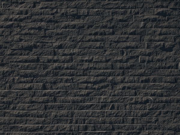 Væg med store mørke sten. Dette fototapet får det til at se ud som om væggen er lavet af sten.