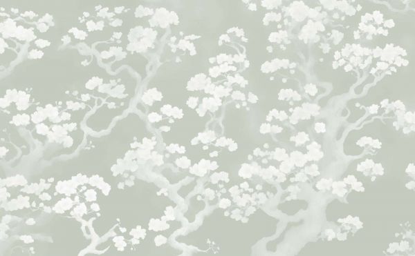 Denne Green-variant udstråler ro og vitalitet fra en tætbevokset skov. Blomstergrenene udfolder sig med elegante, snoede linjer, mens den intense mørkegrønne baggrund fremkalder en næsten mystisk atmosfære. De hvide blomsterblade lyser op mod det grønne og fremhæver de fine penselstræk, der løber gennem hele designet, hvilket skaber en afbalanceret balance mellem friskhed og dybde.