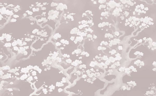 Bløde lyserøde blomsterfolder sig yndefuldt mod tågede, snoede grene og udsender en yndig glød på en drømmende, lys grå baggrund. Den subtile penselvirkning og de blødt glinsende accenter giver helheden en poetisk, næsten eventyrlig stemning.