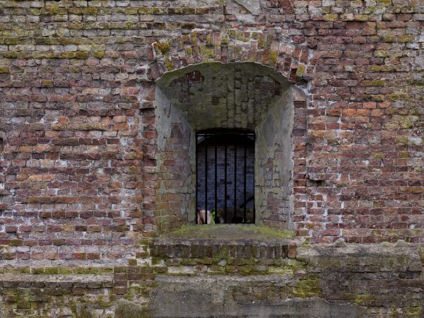 Fördjupning i gammal vägg med tegelstenar. Nischen i den här väggen ser medeltida ut.